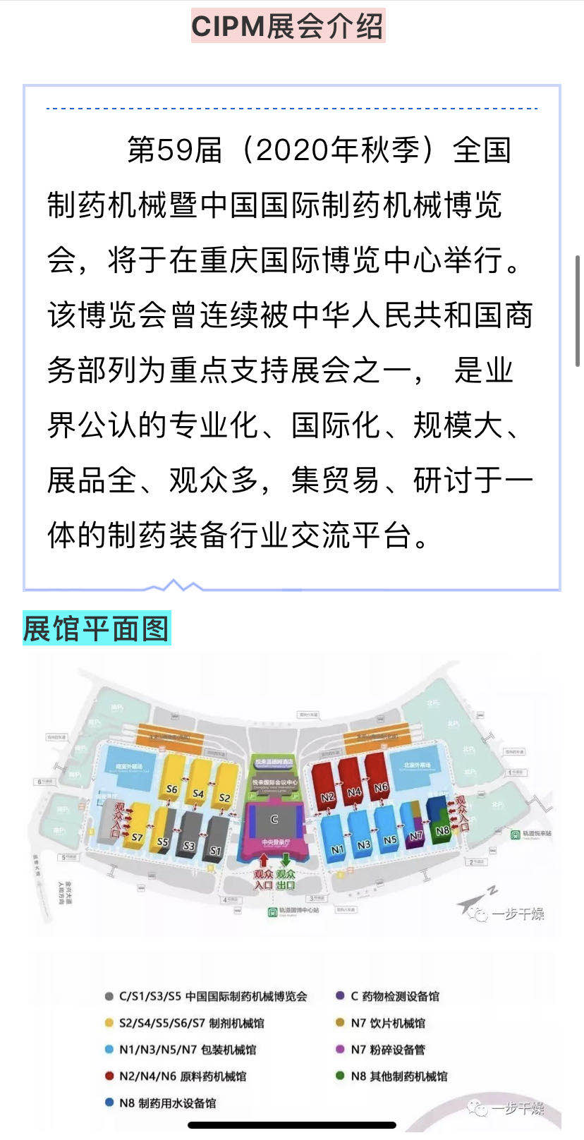 邀请函尊敬的客户朋友: 您好! 第59届(2020年秋季)全国制药机械博览会,将于2020年11月3日至11月5日在重庆国际博览中心举办。 届时,常州一步将向您展示中药配方颗粒专用喷雾干燥机、新型固体制剂制粒干燥连线、脉冲真空干燥机、干法制粒机、闭路循环沸腾…