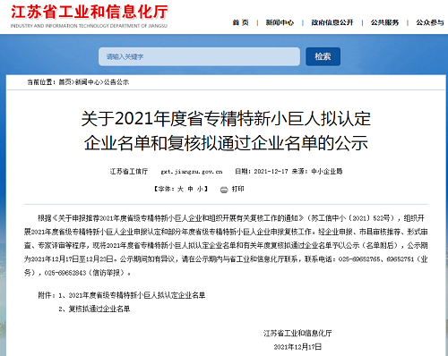 2021年12月17日,江苏省工业和信息化厅公布了2021年度省专精特新小巨人拟定企业名单和复核拟通过企业名单,经过企业申报、市县审核推荐、形式审查、专家评审等程序,常州一步凭借稳步的技术创新能力和市场表现成功入围拟认定企业名单。