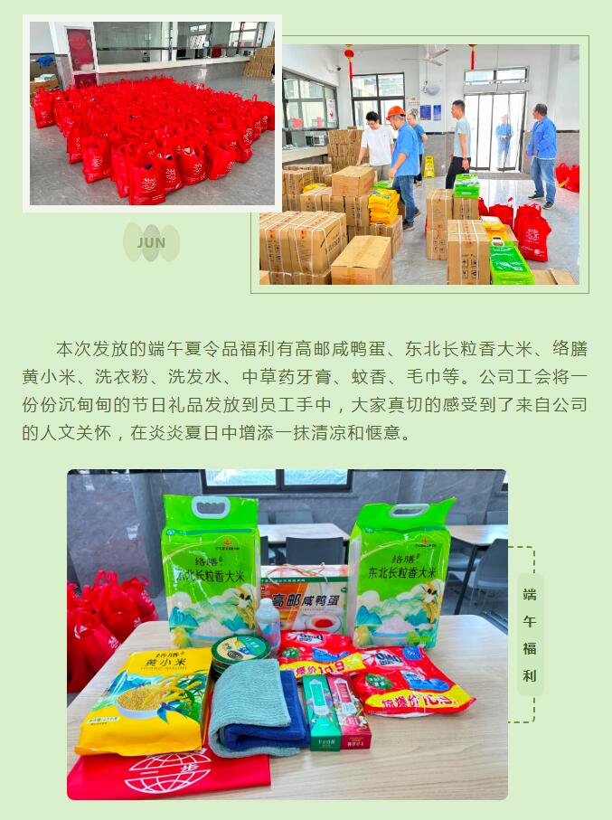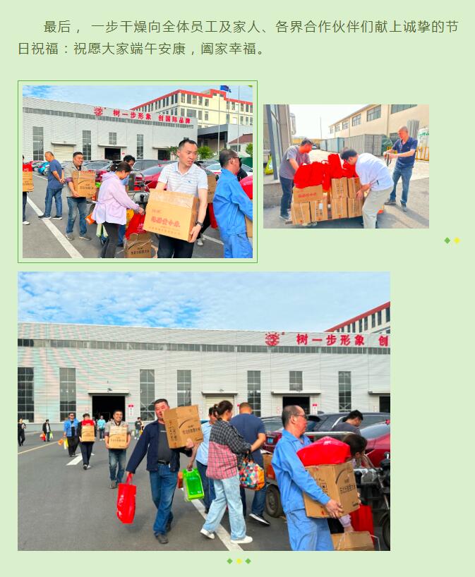 一年一端午,一岁一安康。端午节是中华民族传统节日,为弘扬传统优秀文化,增强员工幸福感、归属感,常州一步干燥设备有限公司在端午节为全体员工发放端午夏令品福利,并送上节日的祝福,让大家度过一个暖心、祥和的端午佳节。