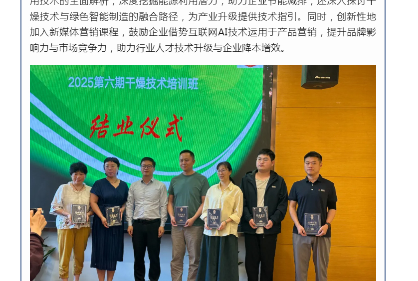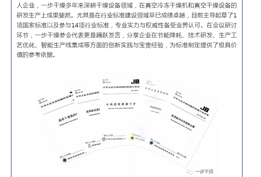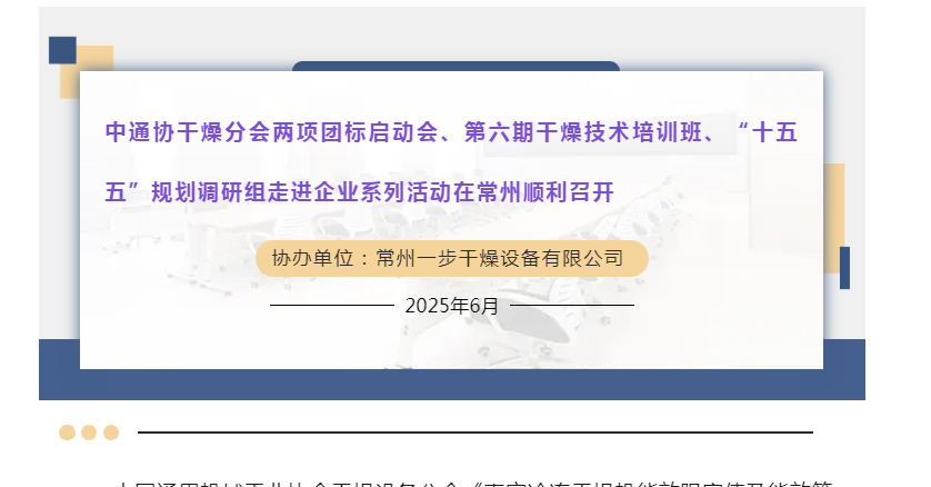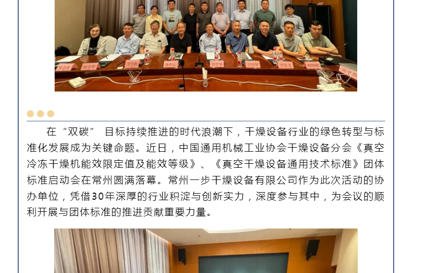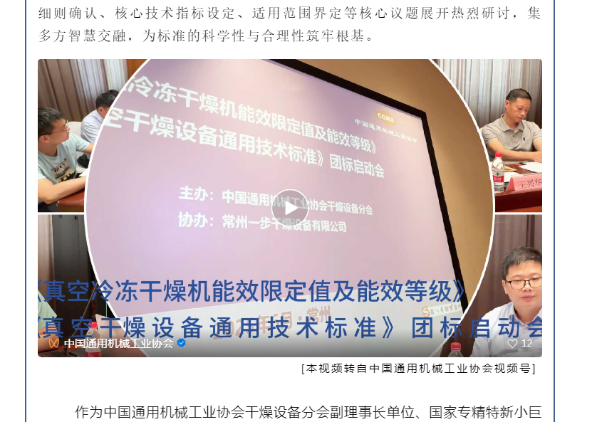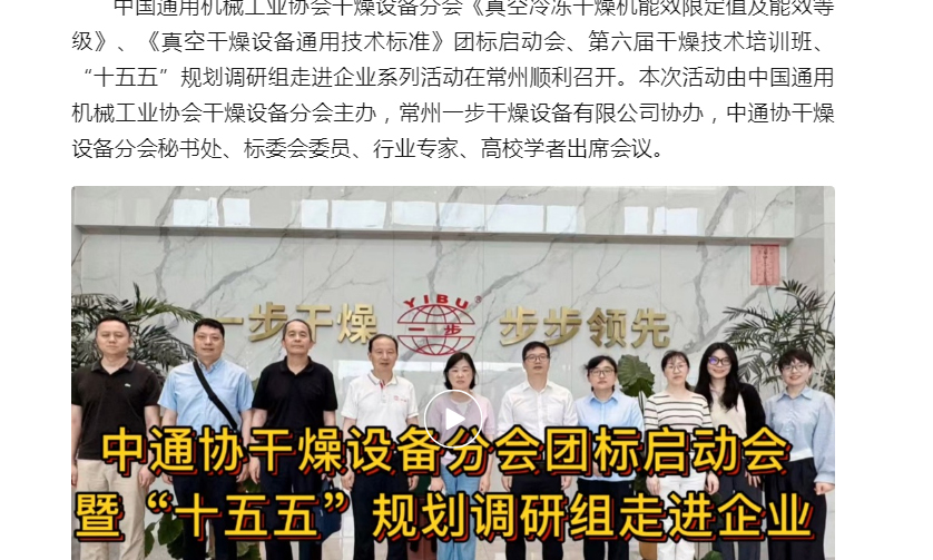 中国通用机械工业协会干燥设备分会《真空冷冻干燥机能效限定值及能效等级》、《真空干燥设备通用技术标准》团标启动会、第六届干燥技术培训班、“十五五”规划调研组走进企业系列活动在常州顺利召开。本次活动由中国通用机械工业协会干燥设备分会主办,常州一步干燥设备有限公司协办,中通协干燥设备分会秘书处、标委会委员、行业专家、高校学者出席会议。