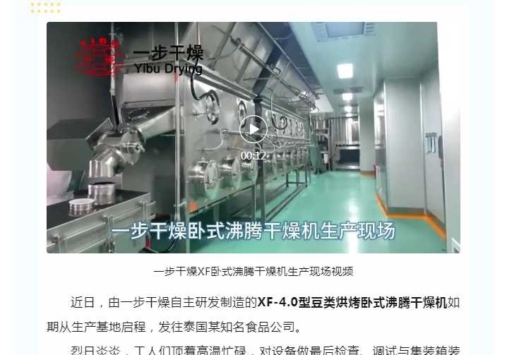 近日,由一步干燥自主研发制造的XF-4.0型豆类烘烤卧式沸腾干燥机如期从生产基地启程,发往泰国某知名食品公司。烈日炎炎,工人们顶着高温忙碌,对设备做最后检查、调试与集装箱装车打包,以汗水与坚守保障按期交付。