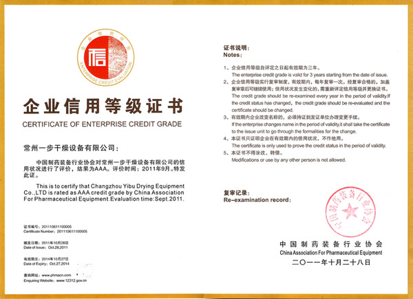 近日我公司再一次被“中国制药装备行业协会”授予“企业信用AAA级信用企业”证书。