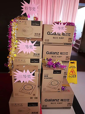 年会盛典节目精彩纷呈,互动游戏、歌曲等节目精彩不断。为激励和表彰各部门、公司员工2017年所做的努力和成绩,年会中,进行了抽奖和抢红包活动,幸运抽中奖品的人数很多,他们在一片欢笑声中领取了奖品,公司为员工准备的新年大奖,将年会现场气氛推向高潮。