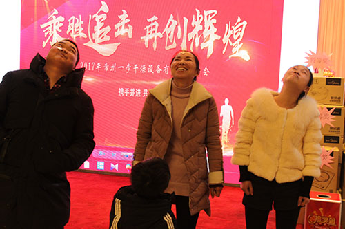 公司查总致开幕词!他说:“二十年风雨同舟,感恩有您!2017年是干燥行业市场竞争非常激烈的一年,同时也是公司稳步发展的一年,更是各部门、各员工逐步成长的一年。大家工作中的勤奋、成功与挫折给公司留下了发展的足迹,大家辛勤的付出给公司留下了许多值得回味的精彩。所以,2017年,效率来自全体员工的激情,成绩属于全体员工的坚持和努力。在这里,我对大家的努力表示诚挚的谢意,他向全体员工表达了新春的祝福,特别为在外出差服务的员工送上热切的关心和诚挚的问候!”