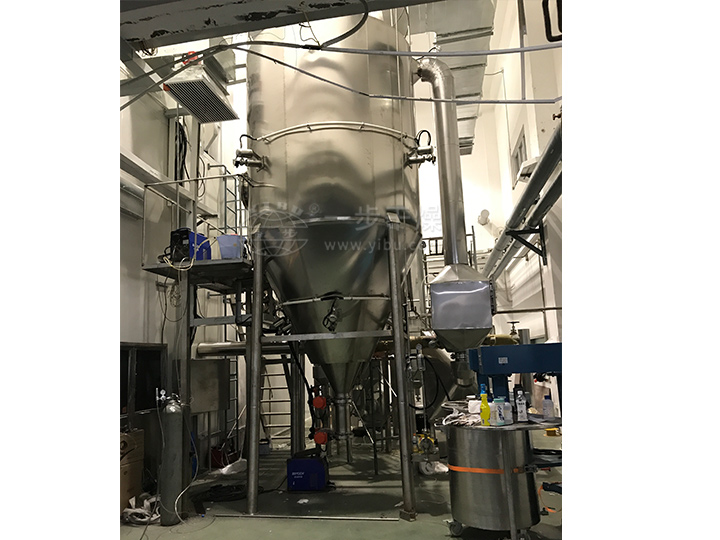 闭路循环喷雾干燥机是在密闭的环境下工作,干燥介质为惰性气体,一般为N2,适用于有机溶剂的物料干燥有毒气的物料或干燥过程中易发生氧化的物料的干燥;该系统采用惰性气体作为循环气体,对干燥的物料具有保护作用,循环气体经历载湿、去湿的过程,介质可重复使用;氮气经加热器加热后进入干燥塔,液体物料经螺杆泵输送至离心喷头处,液体被高速循环的雾化器雾化成液滴,在干燥塔内完成热质交换过程,被干燥后的粉状物料从塔底排出,被蒸发的有机溶剂气体在风机负压的压力下,把夹在气体中的粉尘经旋风分离器、喷淋塔除尘后饱和的有机溶剂气体经冷凝器冷凝成液体排出冷凝器,不凝性气体介质连续加热后作为干燥载体在系统内重新循环使用。而常规的普通的离心喷雾干燥是通过不断的送、排风达到排湿的目的,这也是防爆型闭式离心喷雾干燥设备与普通离心喷雾干燥设备的一个明显区别;干燥系统内干燥介质为N2,内部为正压操作,保持一定的正压值,如果内部压力下降,由压力变送器来自动控制N2进量,保证系统压力平衡。