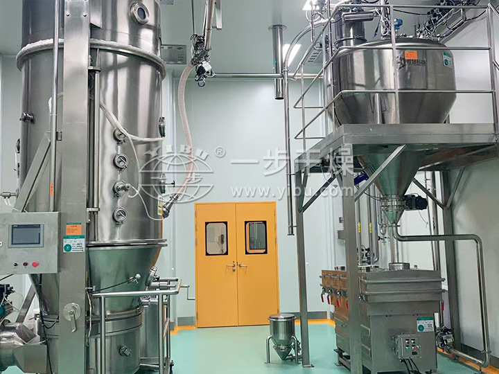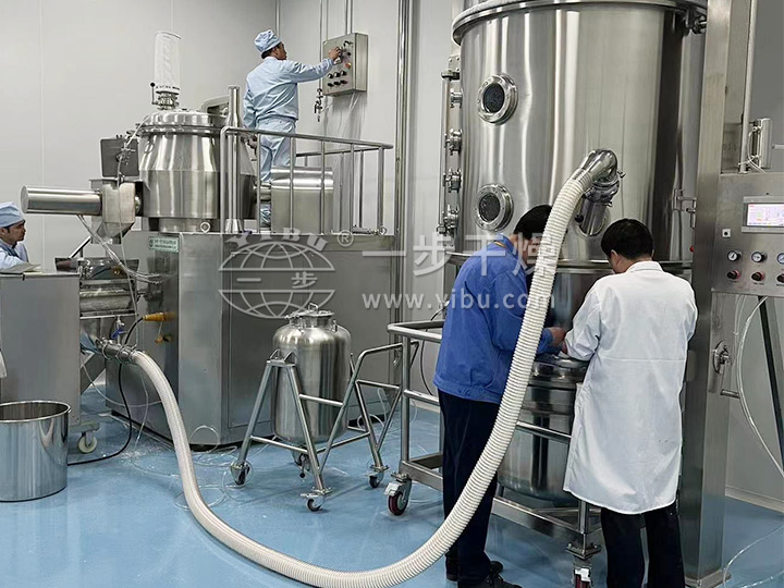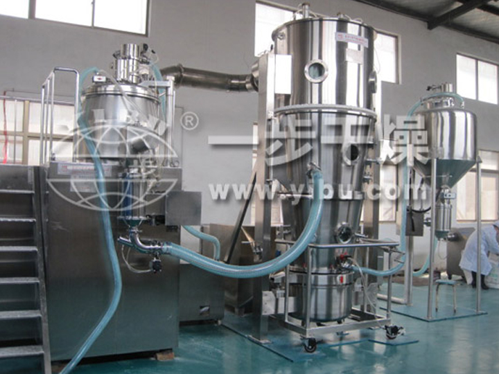 常州一步干燥设备有限司是专业生产制粒、干燥及固体制剂设备的厂家,新型固体制剂制粒干燥联线是结合国内固体制剂生产工艺特点而设计的,是当前新型的联线操作流程,其将湿法制粒、湿法整粒、沸腾干燥、干法整粒、物料输送、混合等有效地组合起来,适用于片剂、胶囊剂等前道工序以及颗粒剂的生产。该流程由湿法制粒机、湿法整粒机、沸腾干燥机、干法整粒机、振动筛、混合机、真空上料机、提升转料等组合。其目的:提高生产率,降低劳动力,密闭性好,减少了可能污染的环节,使生产过程做到无尘化。
