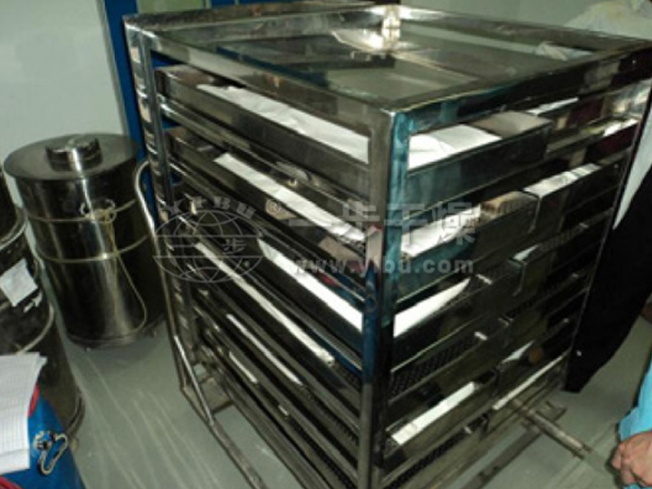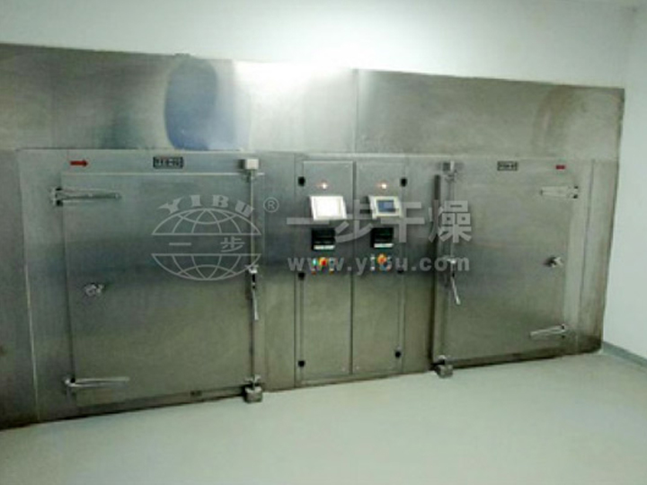 选用大风量、高风压的离心风机作为循环风机进行强制循环通风,提高热效率,加快物料干燥过程。