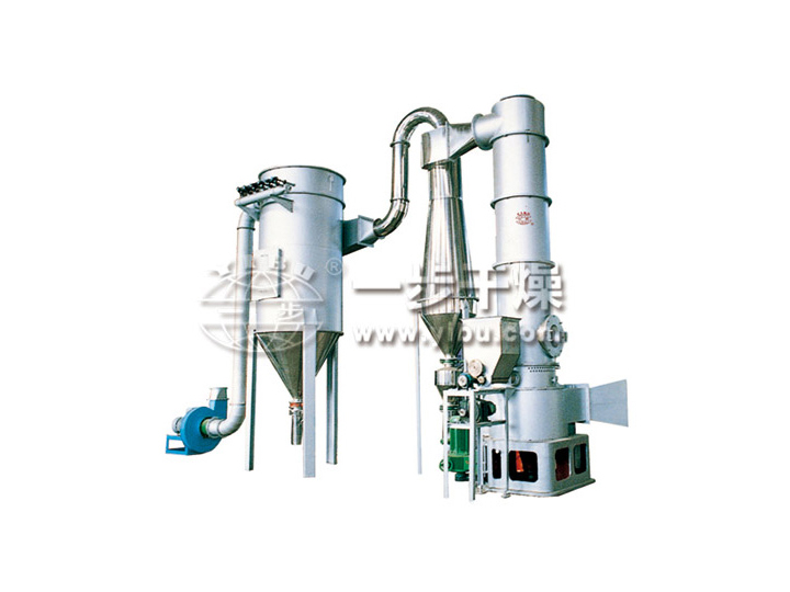 药用辅料闪蒸干燥机是专利产品,主要由进风系统、加热系统、加料系统、干燥主机、收料除尘系统、排风系统、控制系统等组成。工作时,湿物料由螺旋加料器进入干燥室,物料在干燥室中与高速旋转的热风相遇,细粉状物料被热风带着向干燥室上端移动,不能带走的物料落在干燥室底部,被底部的粉碎装置打碎,物料被迅速分散,物料与热风的接触面积迅速增大。在离心力的作用下(顶部有分级装置),达到干燥程度和一定细度的产品被吹出分级装置,物料在此过程中得到快速干燥。