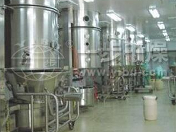 粉末粒子在原料容器(流化床)中呈环形流化状态,受到经过净化后的加热空气预热和混合,将流浸膏雾化喷入,使若干粒子聚集成团粒,由于热空气对物料的不断干燥,使团粒中水分蒸发,此过程不断重复进行,形成理想的、均匀的颗粒。